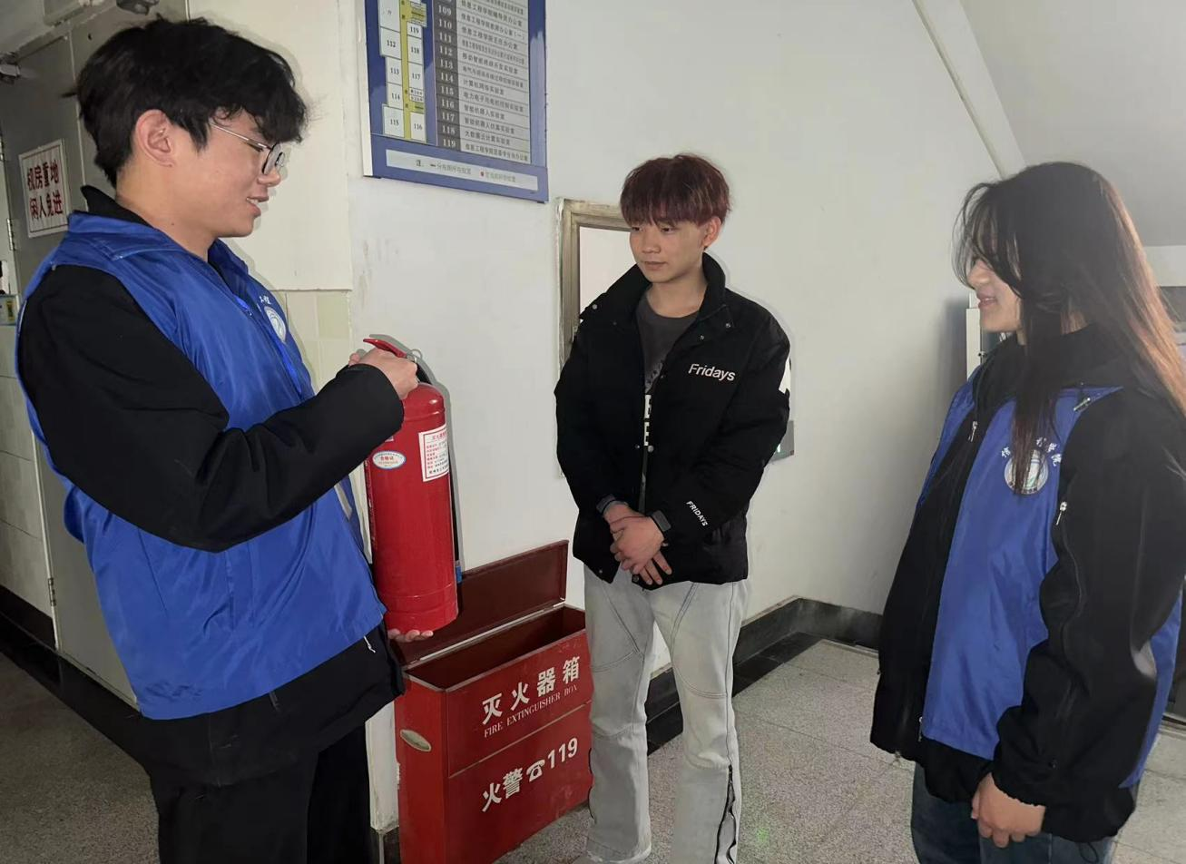 3月9日,志愿者们对资讯楼进行了一系列的安全隐患排查,同时为同学们进行了消防安全知识和应急基本知识的讲解,通过灾前、灾中、灾后三个阶段的全方位介绍,提升了同学们的防灾减灾意识和能力。