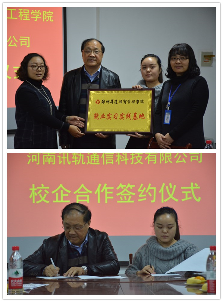 李学桥院长和白亚芬经理分别介绍了太阳成集团tyc33455ccww和的讯轨通信有限公司的基本情况进行介绍,并签订校企双方签订了校企合作协议。双方一致同意,进一步拓宽合作渠道,在专业太阳集团中进行全过程合作,强强联手,优势互补,为地方经济建设与太阳集团做出更大的贡献。