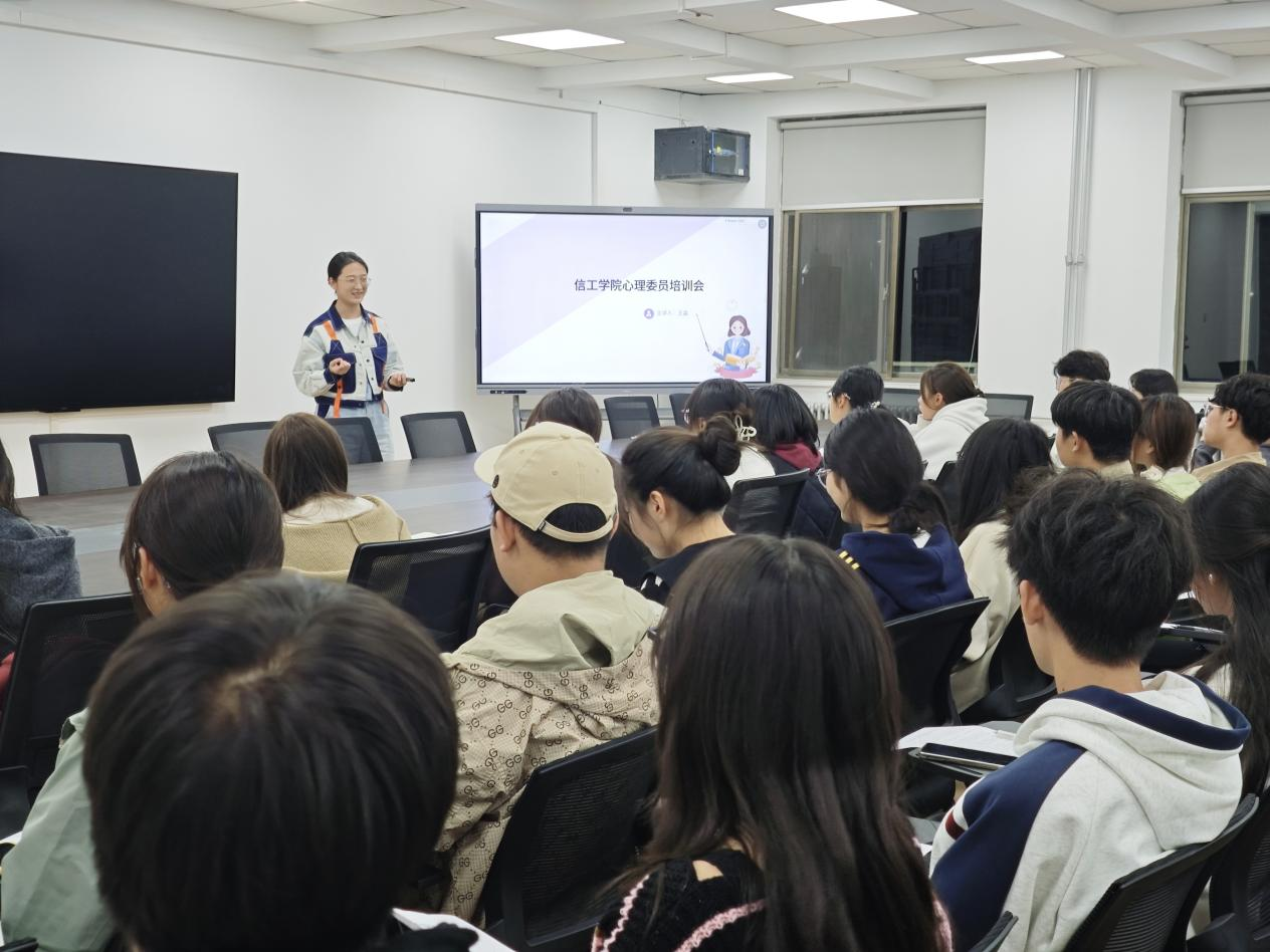 为进一步加强信工学院心理健康教育工作,提升心理委员的专业素养和工作能力,充分发挥心理委员在心理健康教育工作中的桥梁和纽带作用,帮助心理委员掌握实用的沟通技巧和危机干预方法。信工学院于10月22日晚7点在商管楼218室召开心理委员培训会,会议由王淼老师主持,24级全体心理委员参加。