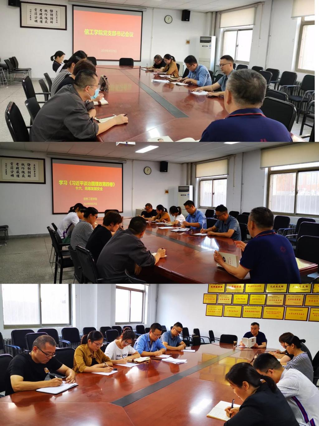 9月29日,信工学院在资讯楼104会议室召开党支部书记例会。会议传达了升达党发【2022】36号《关于进一步加强党支部建设的意见》文件精神,院党委书记张现水、各党支部书记参加了会议。