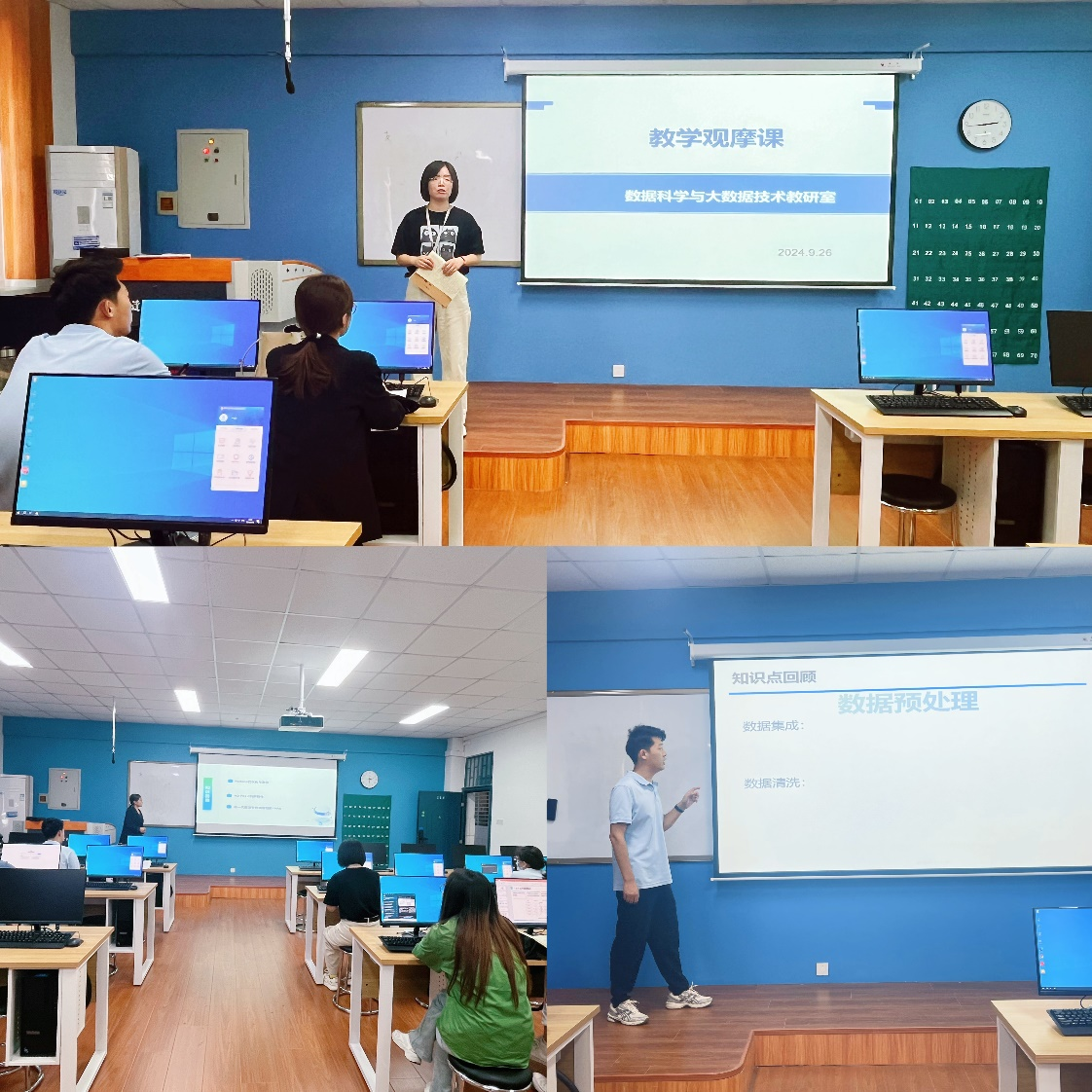 9月26日,信工学院数据科学与大数据教研室全体教师在资讯楼118参加了新入职教师付连友和李晓怡两位老师的教学观摩课,通过本次教学观摩旨在展示新教师的课堂风采、教学设计与教学方法,提高其课堂教学质量。