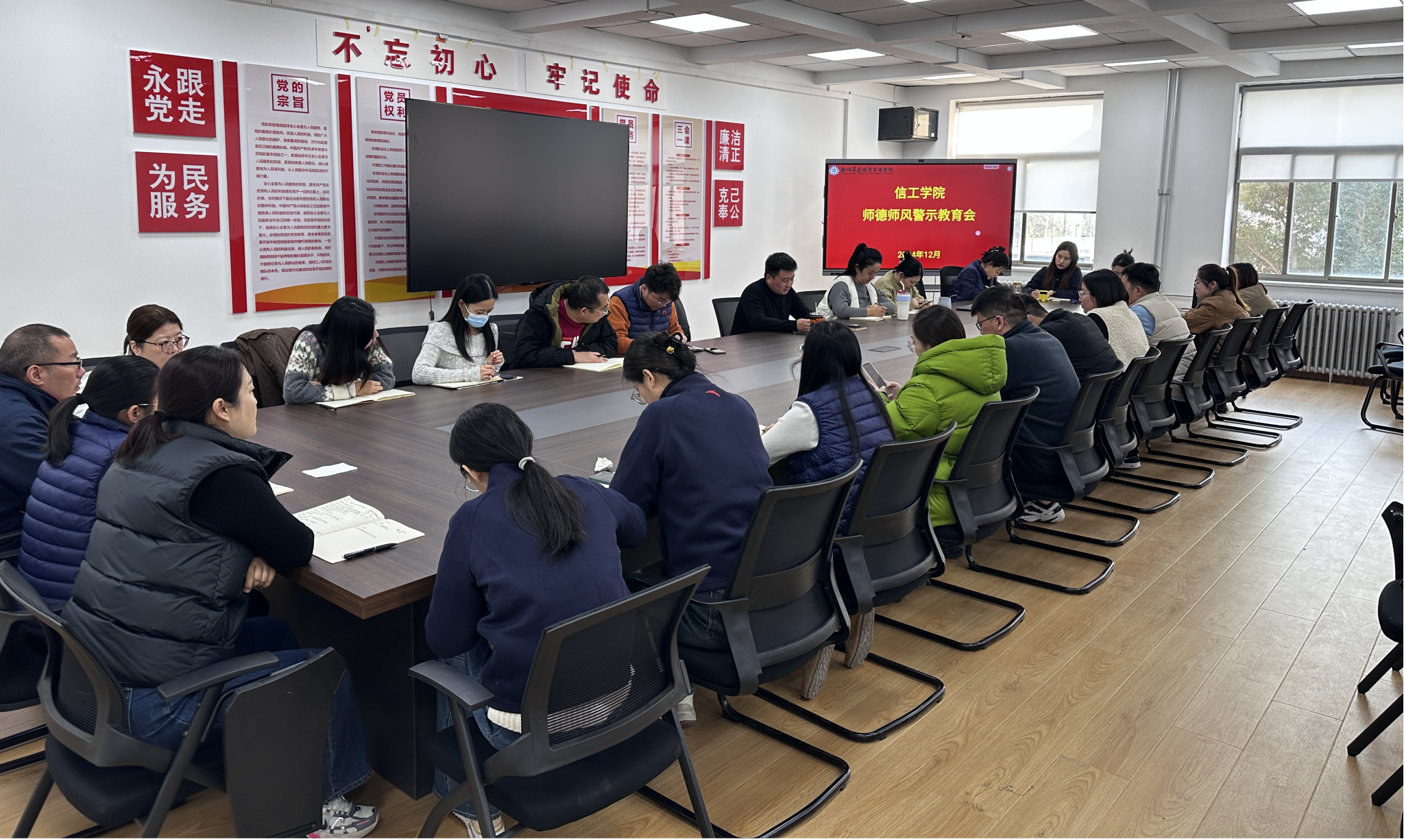 为进一步加强学院师德师风建设,提高教师的职业道德素养,信工学院于2024年12月17日下午在学院会议室针对学院辅导员召开了专题师德师风警示教育会。会议由学院行政秘书王崇主持,全体辅导员参会。