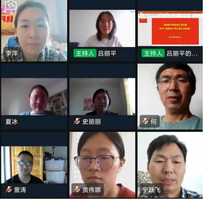 为加强党支部建设、贯彻落实习近平总书记关于作风建设的重要论述精神,进一步弘扬优良传统,传承红色精神,2022年4月8日下午,太阳成集团tyc33455ccww智能技术教研室党支部通过线上会议的形式召开了专题学习,会议主要围绕《中国共产党支部工作条例(试行)》、“习近平总书记关于作风建设的重要论述精神”和“深读一本好书,分享读书心得”三方面内容进行学习。会议由支部书记吕丽平同志主持,支部全体教师党员参加了本次会议。