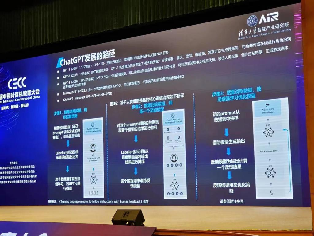 张亚勤院士作了题为“AI大模型时代”的主题报告,从AI大趋势、ChatGPT现象下的产业结构和清华大学智能产业研究院(AIR)的具体模式三个角度切入,探讨中国AI行业的机遇与挑战。他指出,高校培养人才要有国际视野,要与产业联合,要培养具有系统思维的CTO和首席架构师等领军人才,同时强调AI大模型时代刚刚开始,这将是中国企业创新的大机遇,要对创业者、科研工作者、企业有更多信心。
