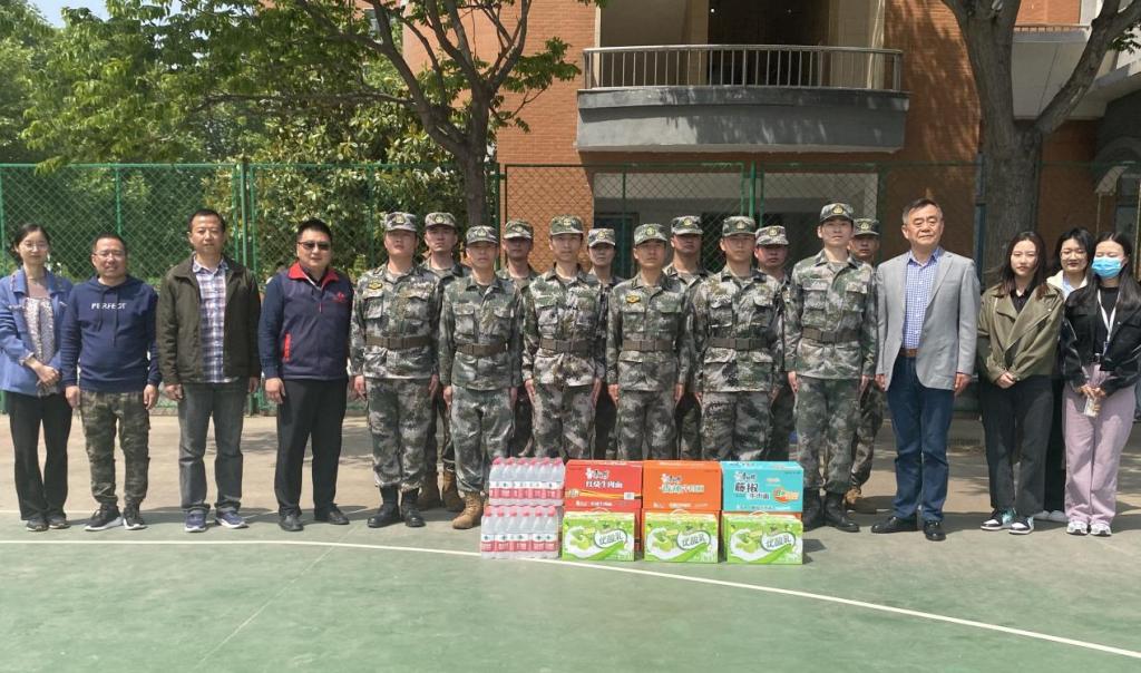 4月26日上午,信工学院党委书记张现水,行政秘书王崇及2022级全体辅导员前往军训场地看望慰问2022级参训新生以及军训教官。