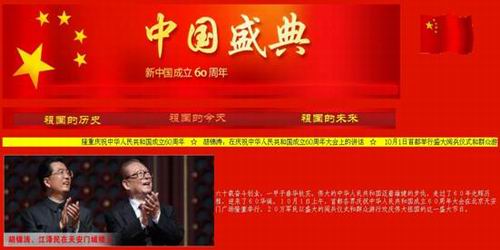 今年,在国庆六十周年大庆之际,我系举办了“迎国庆六十周年网页设计大赛”。以鼓励和培养大学生的科技创新精神,提高科学技术转化为生产力的实际能力和全面素质,激励我系学生的爱国情操,同学们踊跃参加,经我系数名专业老师评审,综合各个方面因素,最终评出一等奖一名,二等奖一名,三等奖二名。