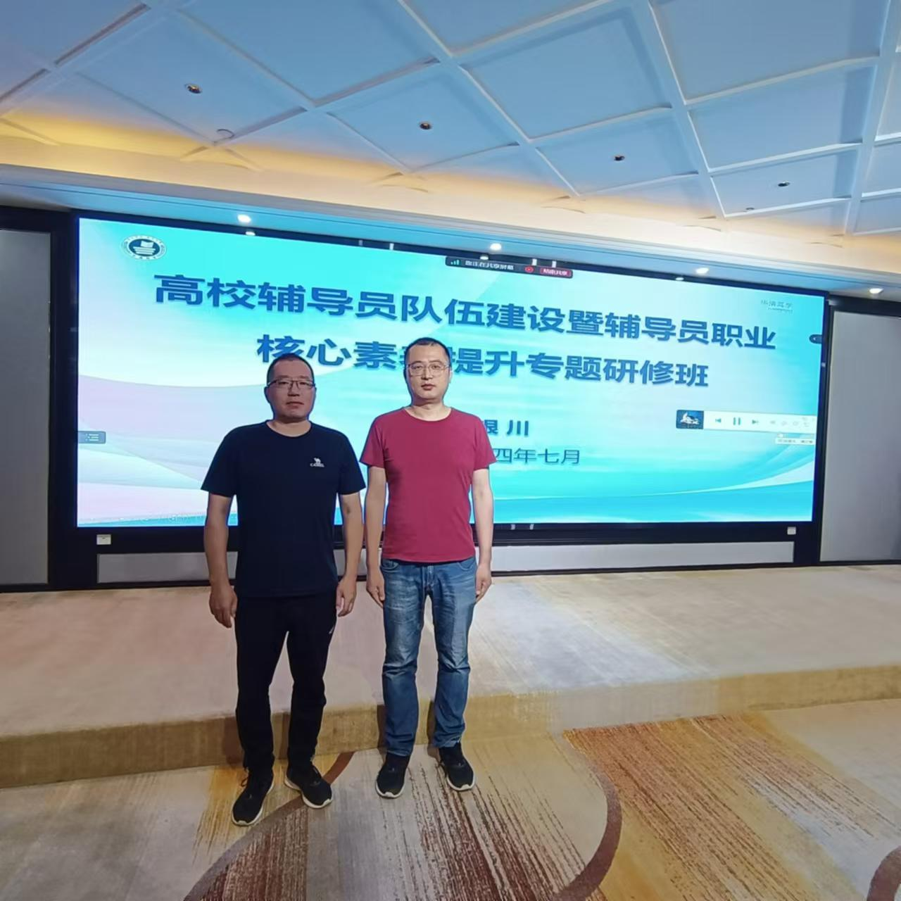 为深入贯彻落实全国高校思想政治工作会议精神,围绕立德树人根本任务,切实强化高等学校辅导员队伍专业化及职业化建设,全面提升辅导员队伍的政治素养、业务能力及育人水平。2024年7月23日---25日,信工学院派袁奉亚、王建红两位辅导员老师赴银川参加高校辅导员队伍建设暨辅导员职业核心素养提升专题研修班。