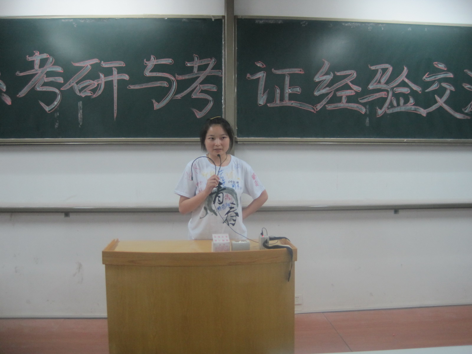 随后,今年考研明星宿舍“五朵金花”之一的刘冬冬学姐上台发言。她说学习不是一时兴起,而是一辈子的事情。她就为什么要考研以及如何考研等问题做了详细讲解。刘东东学姐认为:考研一方面是为了就业,同时也是为自己更好的发展打下基础。并分别从数学、专业课、英语、政治四个考研科目进行了分析。最后,她强调了心态也是很重要的。