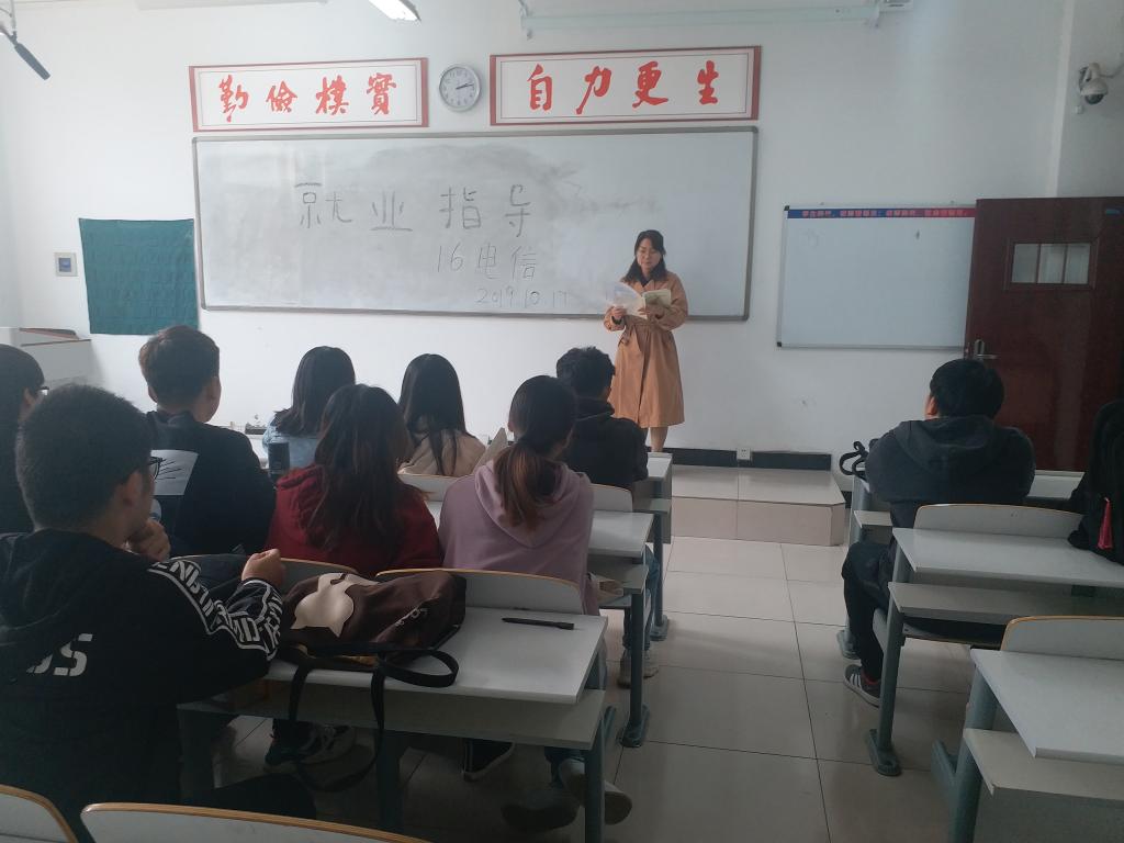 信工学院2016级同学们的在校学习时间即将结束,马上要进入到找工作阶段,很多同学感觉比较迷茫。根据学院安排,王丽娟老师于10月18日召开了16电信1班的“就业指导”专题班会。针对如何制作简历,筛选就业单位,积极提升面试技巧等方面进行了指导。给同学们拓宽了找工作的思路,一是要主动出击,积极筛选合适的单位和岗位。二是要多调研,针对岗位要深入了解。三是在找工作的过程中同时提高自己是专业素养。