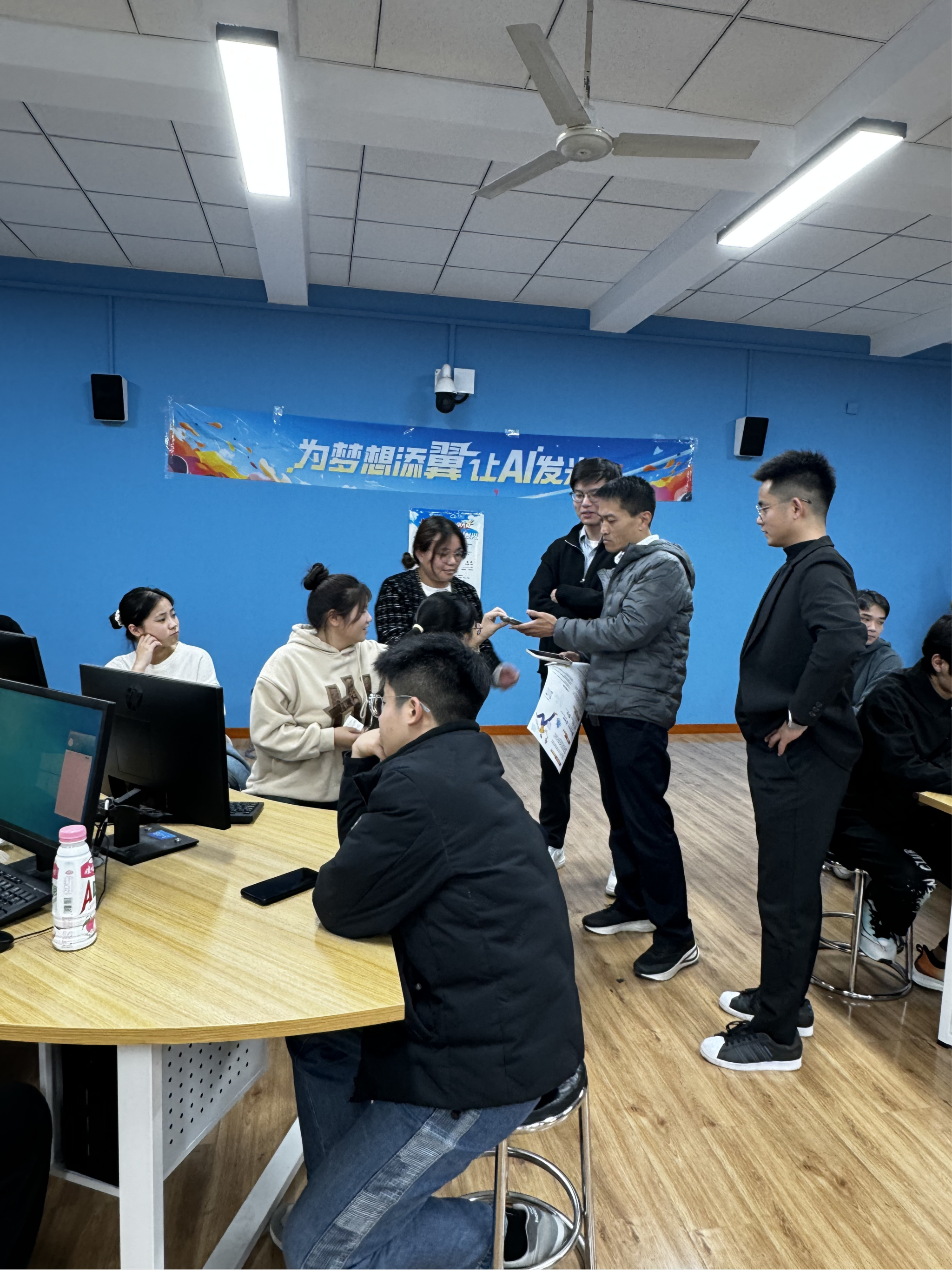 人工智能和机器人协会指导老师贾超广也到达现场,共同指导学生。