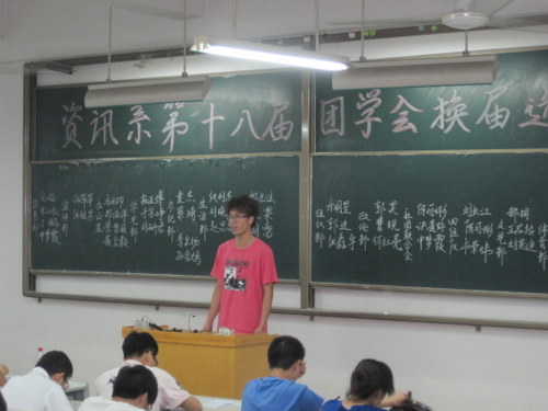 随后各部门参与竞选的人员依次上台发言,他们谈到了自己在一年的团学工作中取得的收获,也表达了愿意继续留在团学会、为资讯系团学工作继续做出贡献的强烈愿望。同学们热情洋溢的竞选演说得到了老师和同学们的一致肯定,阵阵掌声使现场气氛一次次达到高潮。