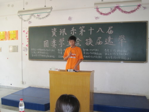 在8日的部长竞选大会上,首先由团委书记陈刚老师发言,他对所有参加竞选的同学以及参与此次投票的老师和同学们表示感谢,并对所有的团学干部提出希望和要求:希望大家能够积极参与、把握机会,在学生会这个大舞台上展示自己的才华,为资讯系的团学工作继续做出自己的努力,要求大家做任何事都要有热情、有责任心、有激情、有创造力,无论结果如何都希望大家一如既往的支持资讯系的各项工作。
