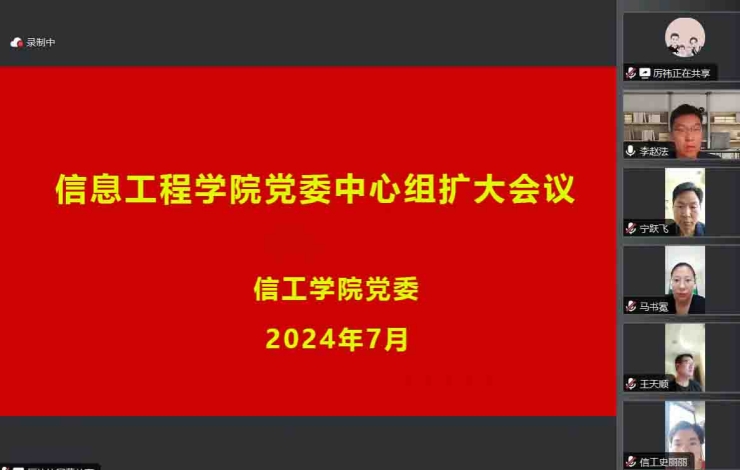 7月31日上午,太阳成集团tyc33455ccww线上召开党委中心组扩大会议。本次会议由党委书记李赵法主持,学院领导班子成员和各支部书记参加会议。
