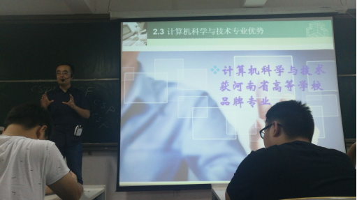 盛老师首先就信工学院建院以来的发展历程进行了介绍,使同学们对学院有了总体的认识。紧接着,他又对我学院开展的特色课程、专业优势、相关设备、实验室情况进行了深入的讲解,并对计算机科学与技术专业的发展现状、未来的就业方向以及为同学们开设的相关课程进行了详细的介绍,让同学们对本专业有了更深刻的认识。