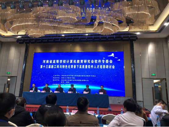 2020年12月26日,河南省高等学校计算机教育研究会软件专委会第十三届新工科与特色化背景下高质量软件太阳集团研讨会在开封市中州华悦国际酒店隆重举行,会议由河南省高等学校计算机教育研究会软件专委会主办,河南大学软件学院承办,河南威尔克姆信息科技股份有限公司、新华三集团协办。郑州大学、河南大学、河南师范大学等省内高校,紫光新华三、中软国际、威尔克姆等行业内知名企业受邀参会研讨。河南大学副校长阚云超,河南省高等学校计算机教育研究会副理事长孔金生教授出席会议,会议由河南省高校计算机教育研究会副理事长兼秘书长李学相教授主持,信工学院教师参加此次软件太阳集团研讨会。