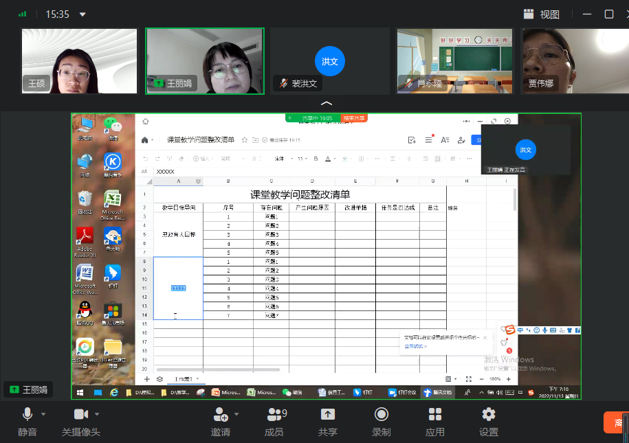 电信教研室老师在“课堂教学问题整改清单”中列出课堂教学突出问题并进行讨论