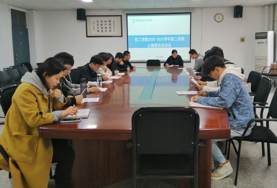 3月31日中午一点,我院在资讯楼104会议室开展心理委员培训会。心理专员厉祎老师和19、20级心理委员参加了此次会议。