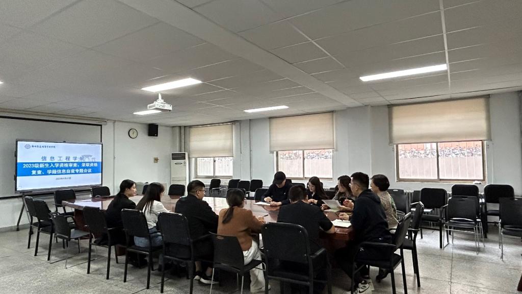 2023年9月21日,为严格规范做好2023年新生入学资格审查、录取资格复查、学籍信息自查工作,切实维护教育公平的公信力,充分保护学生权益,依法依规做好学校学生管理工作,我院在资104会议室召开了2023年新生入学资格审查、录取资格复查、学籍信息自查工作部署会。院长白鑫、书记李赵法以及新生入学资格审查、录取资格复查、学籍信息自查工作领导小组成员参加了会议。教学秘书赵会燕主持本次会议。