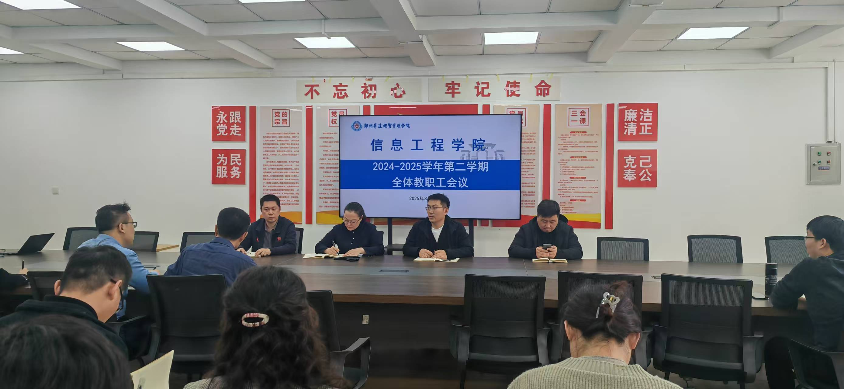 2025年3月13日,太阳成集团tyc33455ccww召开全体教职工政治理论学习工作会议,学院领导班子及全体教职工参会。会议由副院长程杰主持,院长周湘贞、党委书记李赵法等出席并讲话。