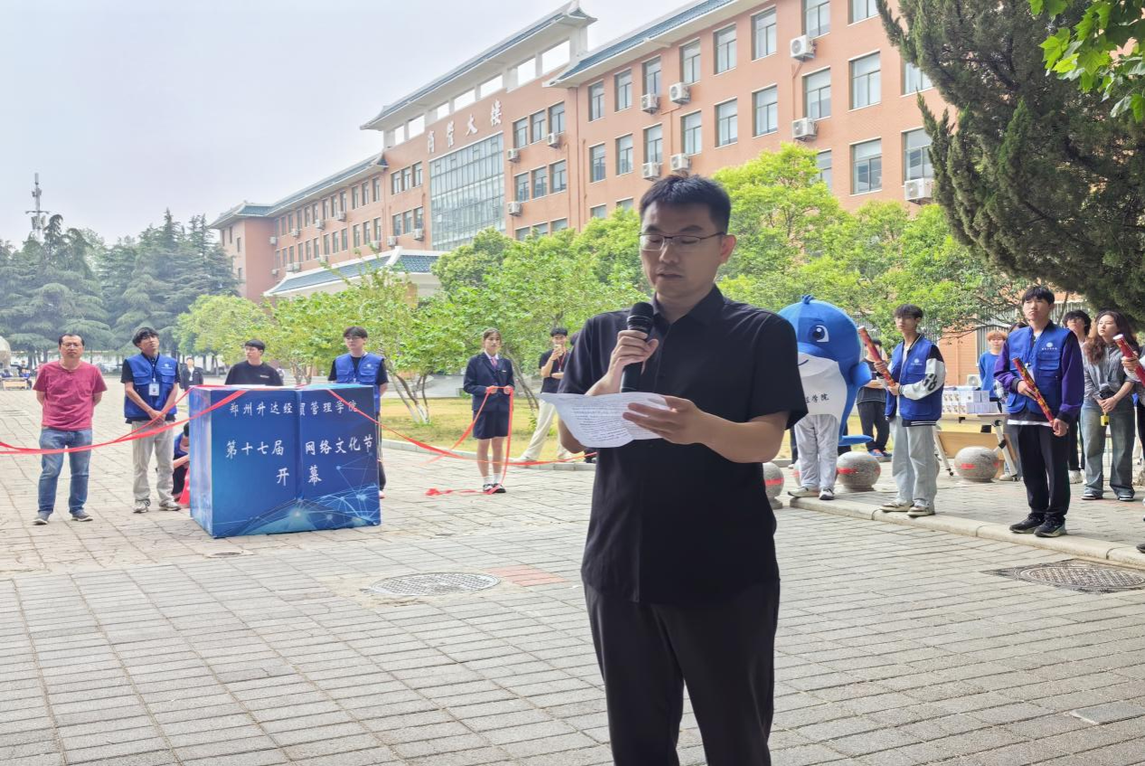 5月23日下午1点,以“弘扬网络正能量,共建清朗e空间”为主题的第十七届网络文化节,在资讯楼西侧顺利开幕。出席本次开幕式的领导嘉宾有校团委李雷副书记,信工学院李赵法书记、行政秘书兼团委书记王崇老师、团委副书记袁奉亚老师、团委副书记杜自平老师,以及辅导员代表和各班级同学代表。