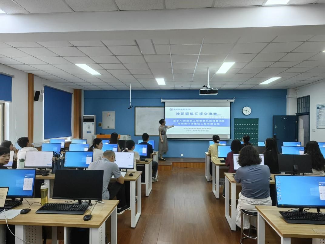 随后,李园园老师圆满完成企业挂职锻炼任务后分享了在河南隆仟祥建设工程有限公司的挂职经历与心得体会。李老师表示,通过在企业的实践,不仅亲身体验了人工智能在工业互联网中的应用等前沿技术的应用场景,更深刻认识到理论教学与产业实践相结合的重要性。挂职经历让自己对企业的人才需求有了更清晰的认知,未来将把这些宝贵经验融入到课程设计、实践教学和科研项目中,努力培养出更符合社会发展需求的高素质应用型人才。