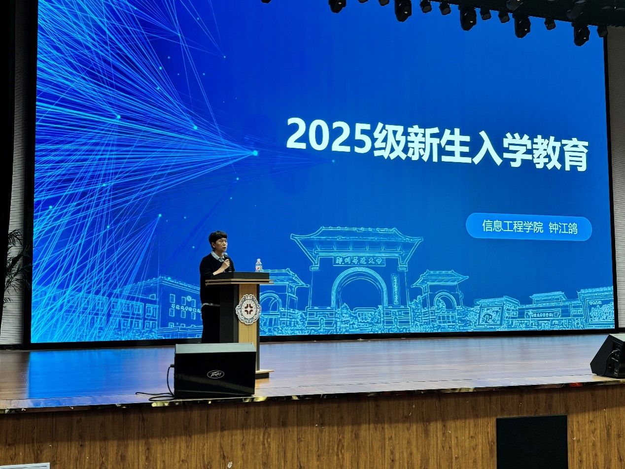 随后,院党委书记钟江鸽同志聚焦“2025级新生入学教育”主题讲授“开学第一课”。她系统梳理了学院的发展脉络与育人特色,强调了信息工程学科服务国家战略的重要性,引导新生将个人发展锚定“信息强国”时代使命,助力其树立清晰的求学航向。