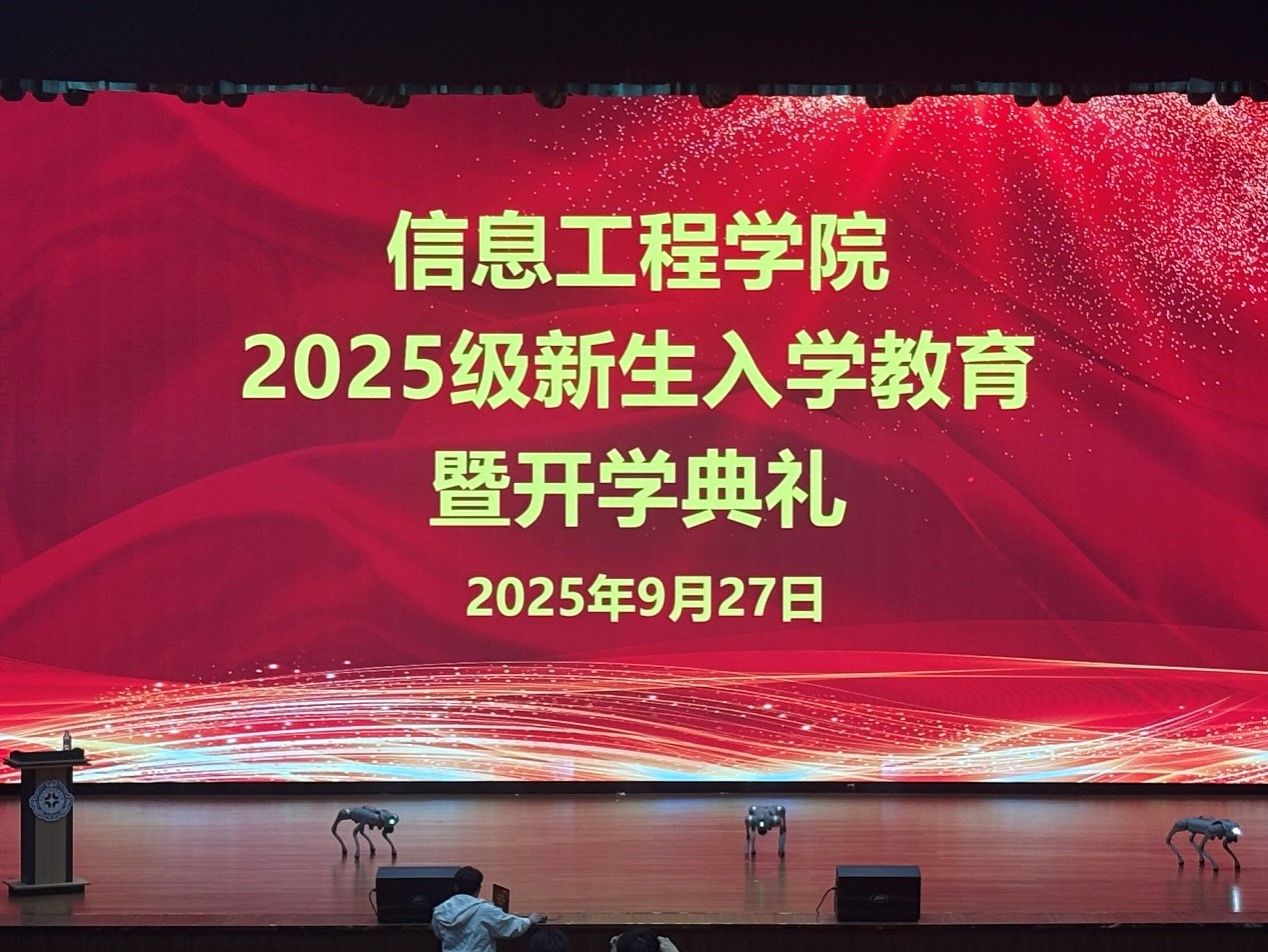 典礼正式开始前,炫酷机器狗在舞台上上演了充满科技感的表演,给新生同学们带来了全新的科技互动体验,也为人工智能教育增添了新的活力。这只兼具科技感与灵动性的机器狗,迅速成为馆内焦点。