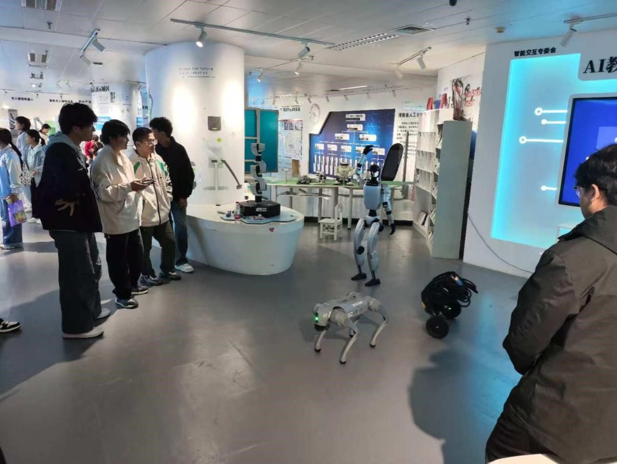下午,学习队伍转赴至河南省人工智能研究院。作为全省人工智能领域的最高学术研究机构,这里为同学们打开了一扇通往科研前沿的窗口。通过实物演示、互动体验等方式,同学们亲身体验了智能机器人、高精度视觉识别系统以及AR设备,深入了解人工智能算法优化、机器学习模型训练等专业技术的实际应用,让大家对“智能科学与技术”这一专业的内涵与外延有了更深层次的理解,对投身科研事业产生了无限向往。