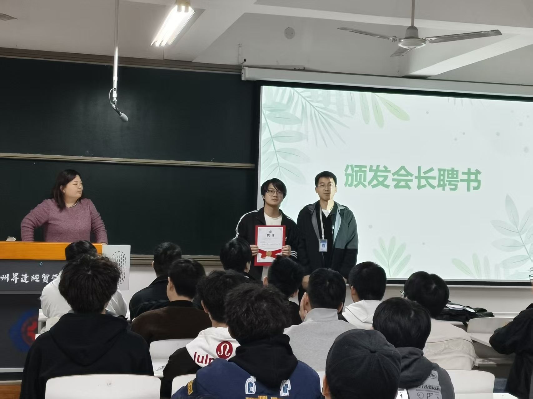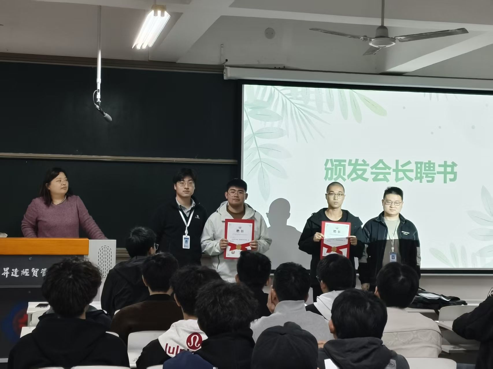 讲座尾声,现场举行了一场简短而庄重的聘书颁发仪式,刘豪凯老师、焦文开老师、赵永洋老师分别为学生张亚鹏、田豪辉、任现委颁发会长聘书,这一瞬间标志着电子设计协会新一学年的工作正式扬帆起航。整场活动在同学们经久不息的热烈掌声中圆满落幕,大家纷纷表示对未来的学习方向和协会发展满怀信心与期待,誓将携手共进,共创辉煌。