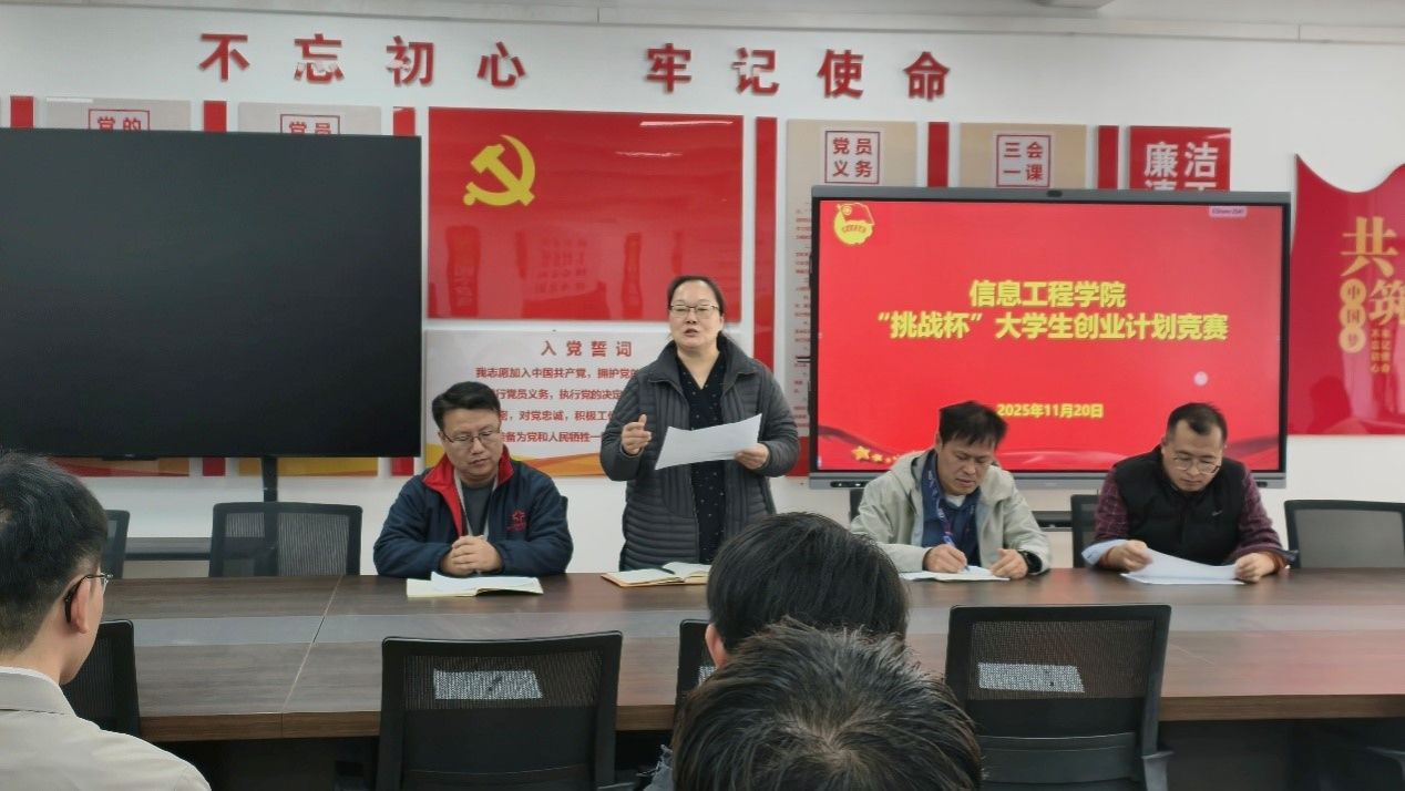 11月20日14:30至17:00,太阳成集团tyc33455ccww“挑战杯”大学生创业计划竞赛在商管楼218会议室顺利开展。本次比赛吸引37支团队同台竞技,太阳成集团tyc33455ccww院长周湘贞出席并致辞,计算机科学与技术教研室主任王天顺教授、物联网工程教研室主任乔木教授及团委副书记袁奉亚担任评委,师生代表共同见证了这场青春科创盛宴。