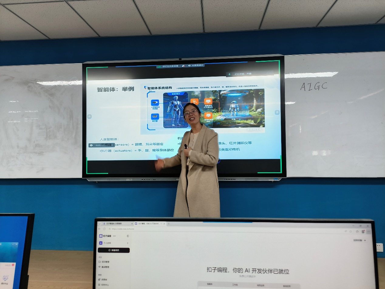 培训特邀专委会专家、河南理工大学芦碧波、张建春、陈艳丽、郑艳梅,以及专委会张沛杰老师组成授课团队,结合丰富的教学经验与行业实践,带来了干货满满的精彩分享。芦碧波教授从人工智能概念、发展历程及核心要素切入,系统讲解了机器学习处理流程、深度学习基础等内容,并聚焦教学方案设计方法论,为参训教师提供了课程构建的核心思路。陈艳丽副教授与张建春博士联合授课,围绕自然语言处理、大模型应用、AIGC技术原理等主题展开实操教学,通过智能办公助手开发案例、多媒体内容创作实操、无代码应用开发训练等环节,提升教师技术应用能力。郑艳梅博士与张沛杰专家共同带领学员深入探索智能体开发技术,从平台操作到实战训练,全方位解析智能体应用场景与开发流程。我校信息化处处长徐亚杰结合我校智能体开发平台的应用实践做了主题分享。