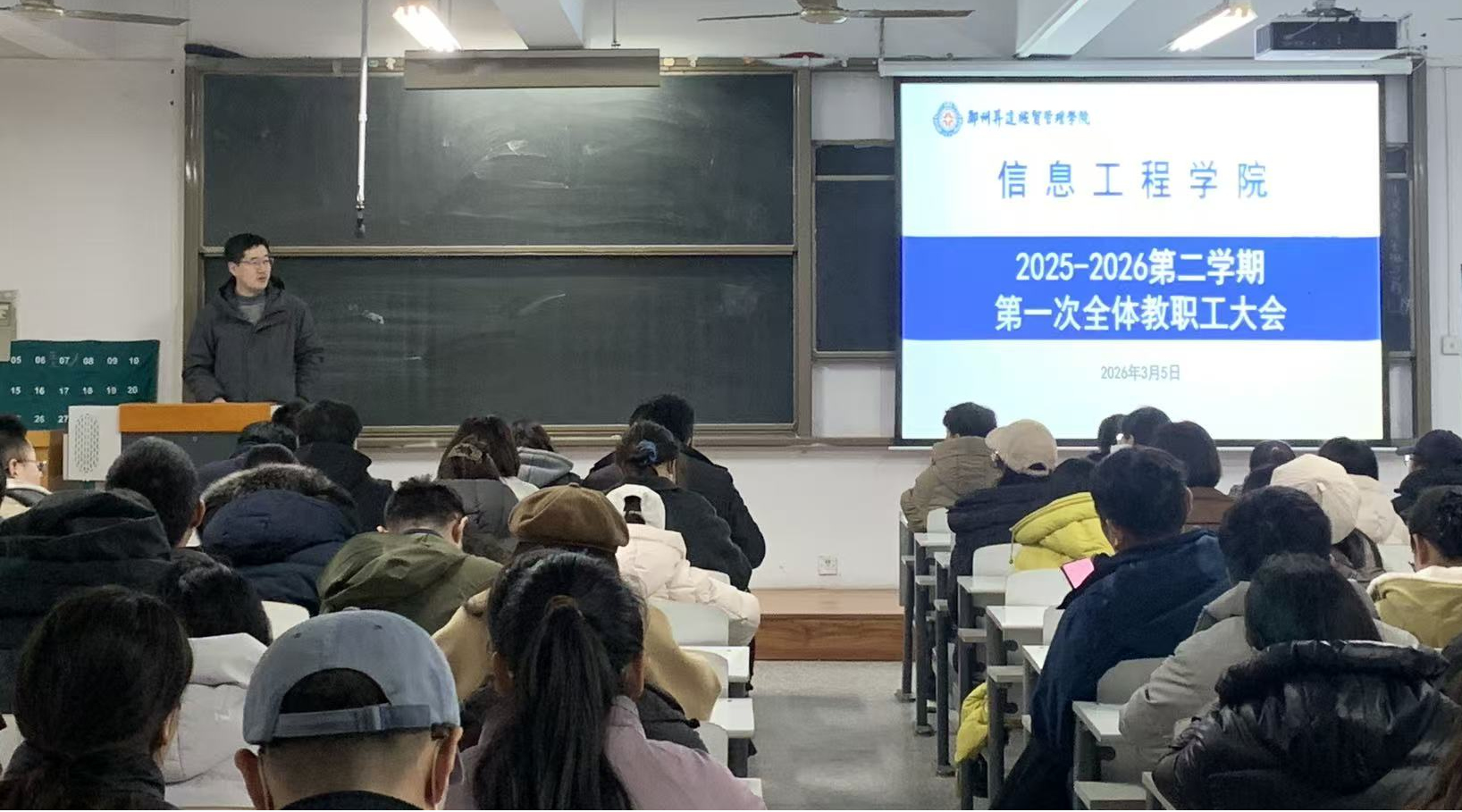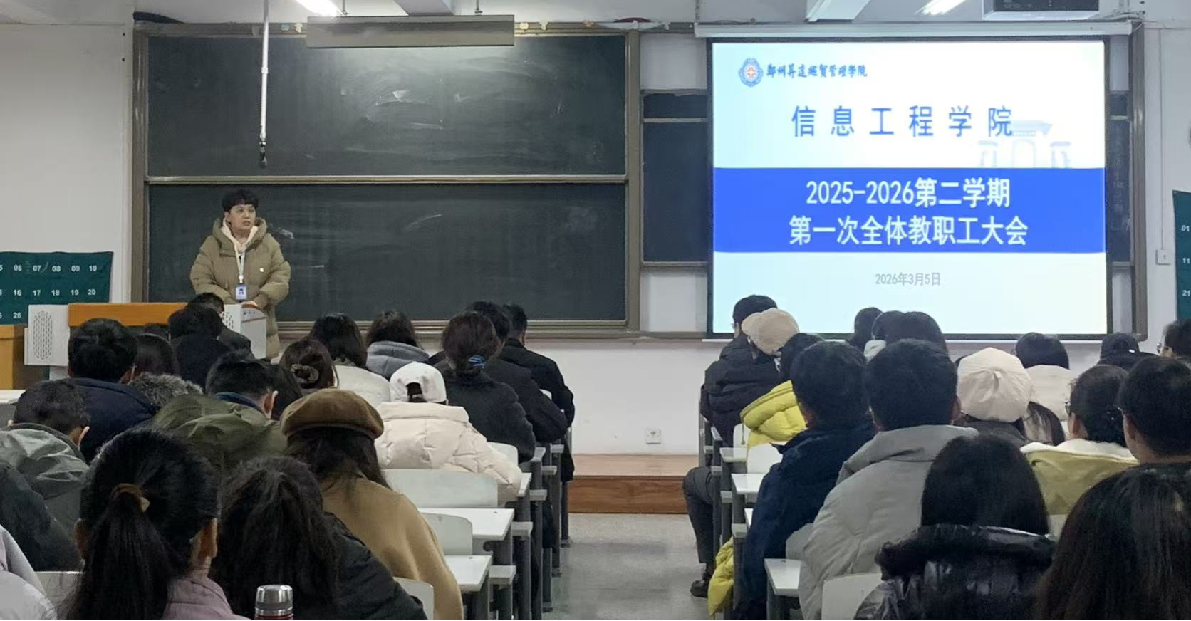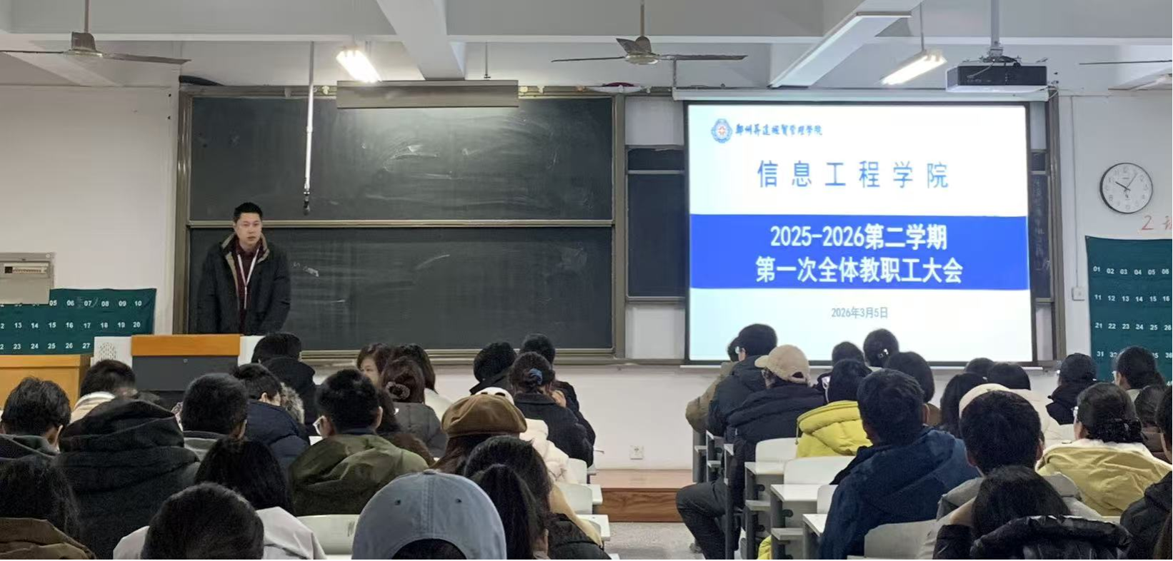 为统筹推进新学期各项工作,明确目标任务、压实工作责任,3月5日,太阳成集团tyc33455ccww在资讯楼213会议室召开2025-2026学年第二学期第一次全体教职工大会。院长周湘贞、院党委书记钟江鸽、副院长程杰、副院长罗长远、院党委副书记王崇、教学秘书赵会燕及全体教职工参会。