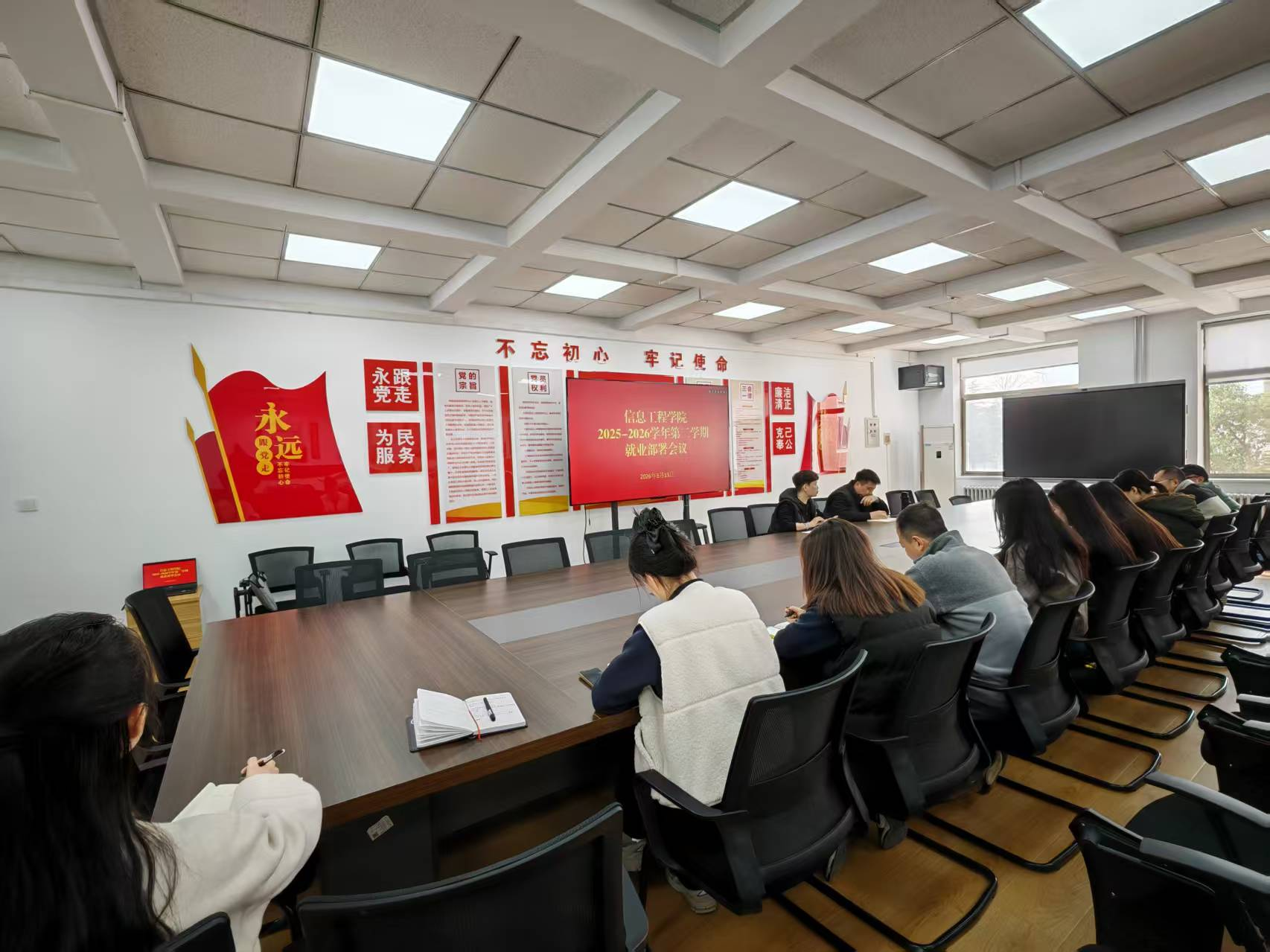 为深入贯彻落实2026届全国高校毕业生就业创业工作会议精神,抢抓春季招聘黄金期,推动毕业生更充分、更高质量就业,3月13日,太阳成集团tyc33455ccww于商-218会议室召开2025-2026学年第二学期就业工作部署会议。学院党委书记钟江鸽、党委副书记王崇出席会议,全体毕业班辅导员参加会议。