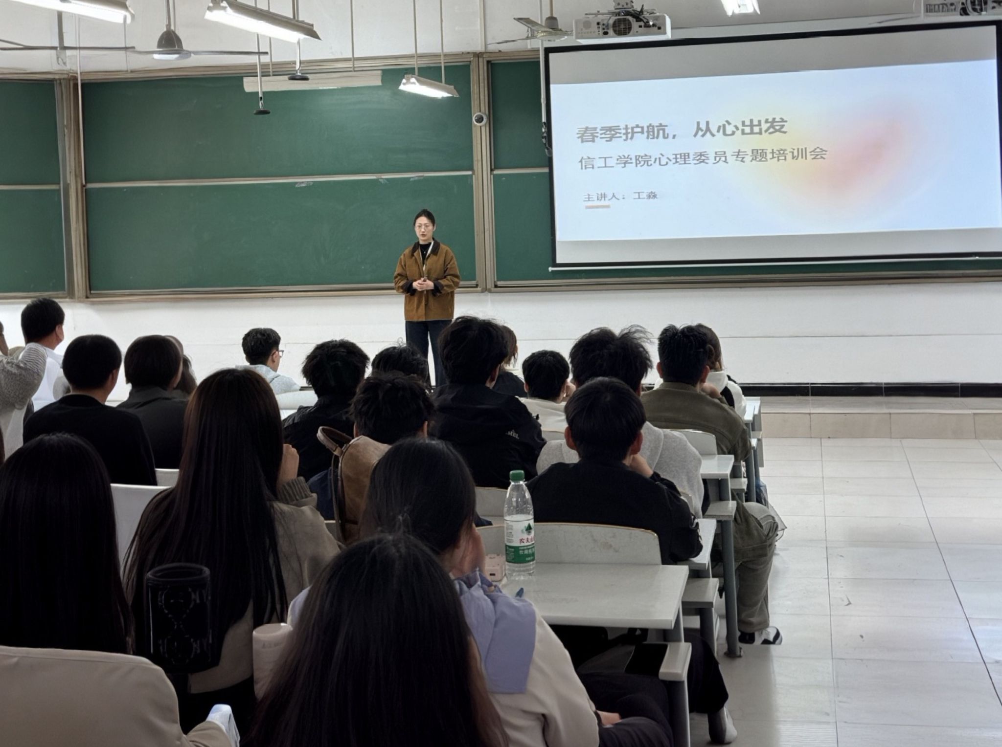 为扎实做好春季学期学生心理健康教育工作,4月2日中午1点,信工学院在时金楼107室举办了“春季护航,从心出发”心理委员专题培训会。本次培训由学院心理专员王淼老师主讲,全院心理委员参会。