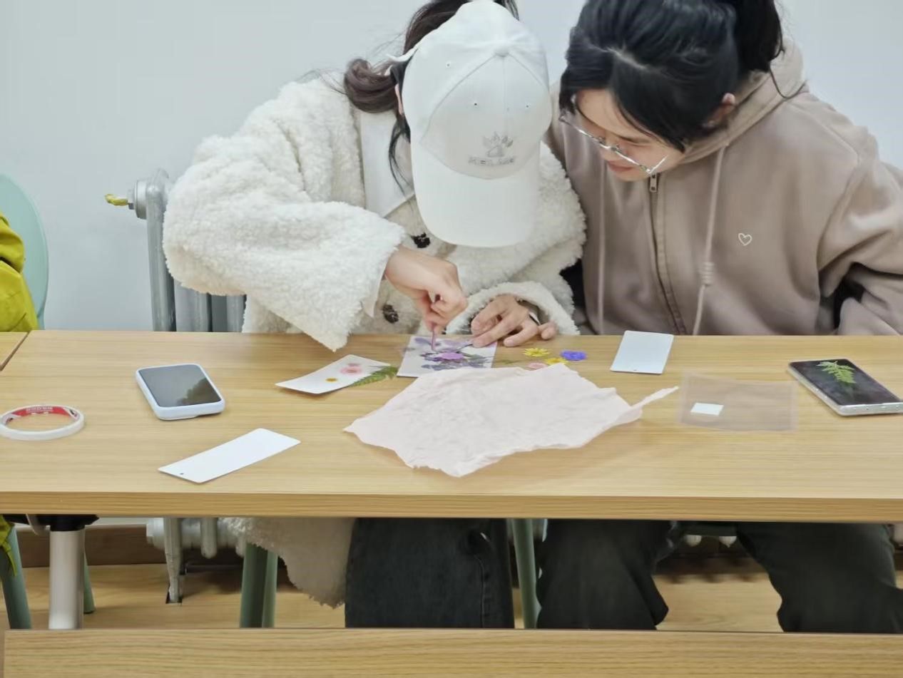 活动突破传统心理健康教育形式,通过"自然材料+艺术创作"的创新模式,引导参与者在压花书签制作过程中实现自我表达与情绪释放。心理协会会长曹宇航现场演示了干花拼贴、色彩搭配等技巧,同学们充分发挥创意,将春日花朵定格为永恒的艺术品。每一片花瓣、每一抹色彩,都成为同学们寄托情感的载体,让心灵在创作中得到抚慰。