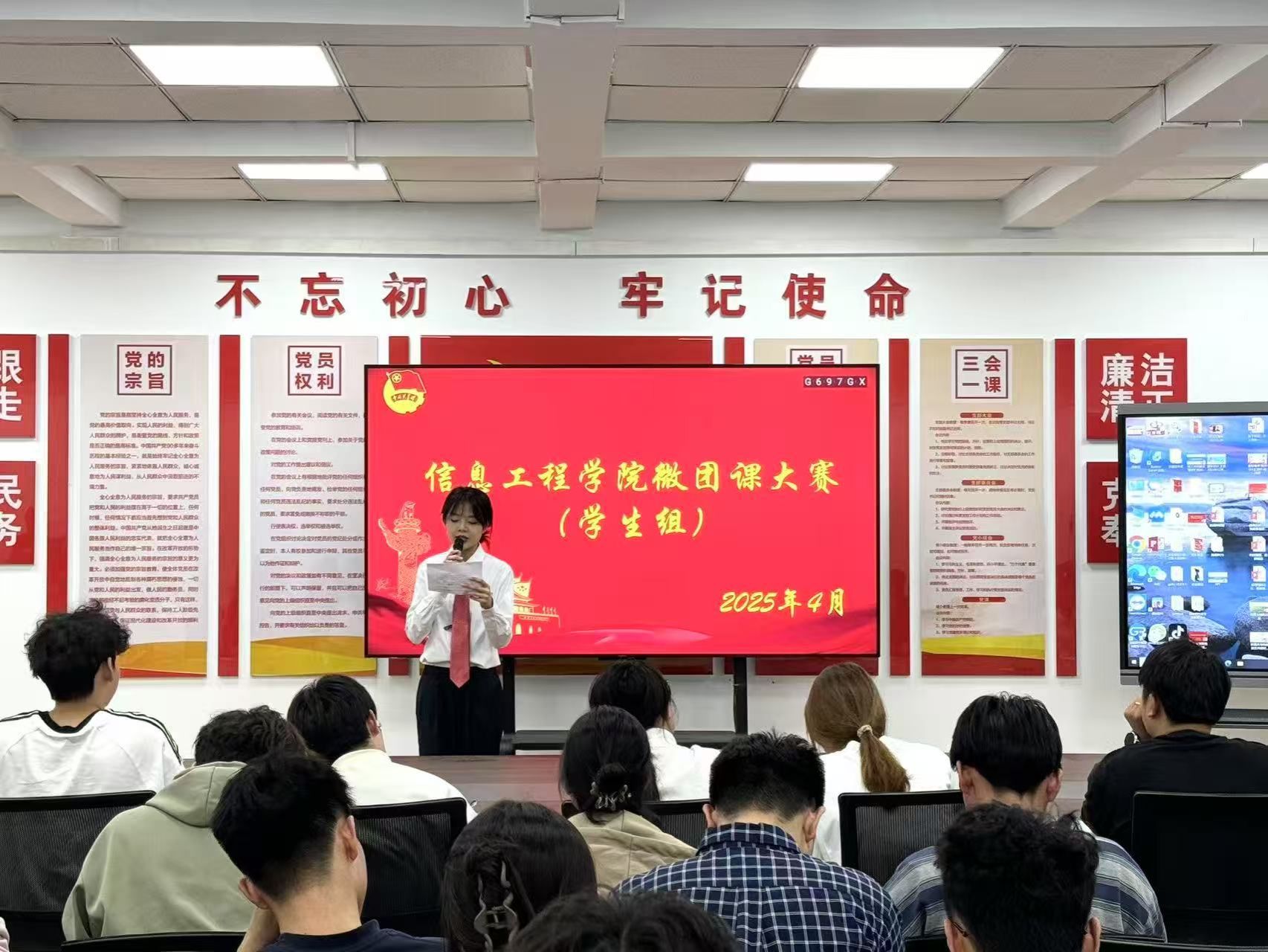 2025年4月14日晚7点,太阳成集团tyc33455ccww学生组微团课大赛在商管楼218教室火热开启。本次大赛旨在深入学习贯彻党的二十大精神,加强青年思想政治引领,激发团员青年的学习热情与创新活力,吸引了众多学生到场观摩。