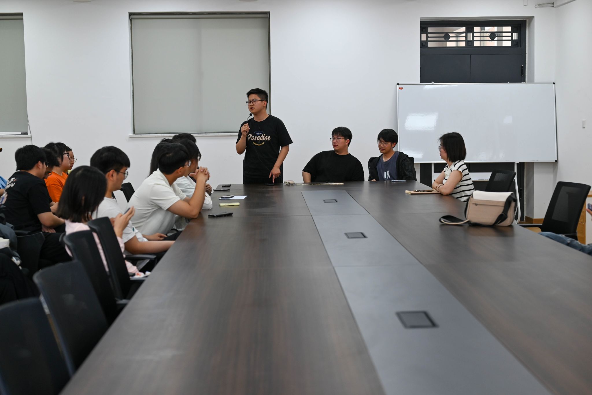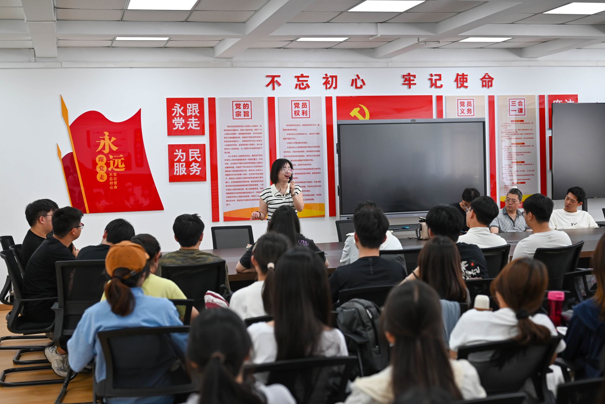 座谈会上,刘敏娟主任结合“不忘初心、牢记使命”主题教育发表开场致辞。她强调:“在人工智能快速发展的时代背景下,大数据专业学生既要夯实专业基础,更要胸怀家国,将个人发展融入国家战略需求。”随后,教研室青年骨干教师团队分别从课程学习、科研训练、时间管理等方面为同学们提供了专业指导。