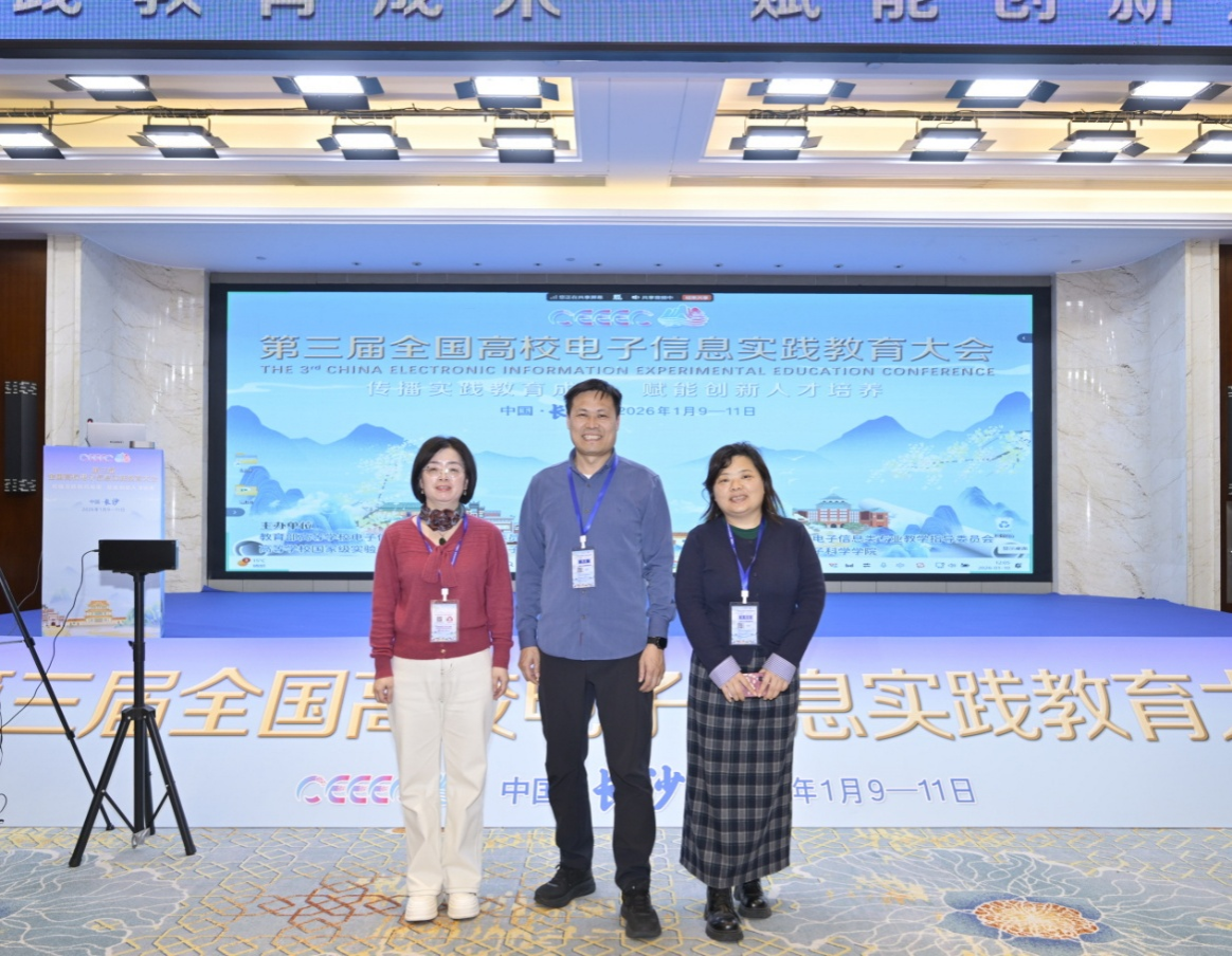 2026年1月9日至11日,第三届全国高校电子信息实践教育大会在湖南长沙隆重召开。本次大会以“传播实践教育成果,赋能创新太阳集团”为主题,由教育部高等学校电子信息类专业教学指导委员会与高等学校国家级实验教学示范中心联席会电子学科组主办,湖南大学物理与微电子科学学院承办,汇聚了全国高校电子信息领域的专家学者、教学骨干及企业代表,共同探讨实践教育改革与创新太阳集团的新路径、新方法。我校电子信息工程教研室主任田海丽、物联网工程教研室主任乔木、数据科学与大数据技术教研室主任刘敏娟三位老师受邀参会,深入学习行业前沿理念与优秀实践经验。