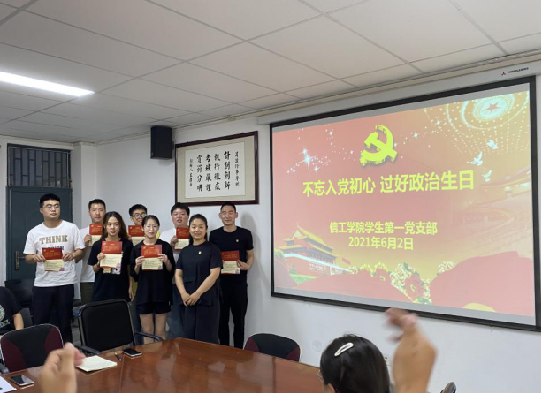 2021年6月2日下午一点,信工学院学生第一党支部于资讯楼104召开党员发展与转正大会暨政治生日主题党日活动。本次会议由信工学院学生第一党支部支部书记苗淑娟主持,支部全体党员参加此次会议。