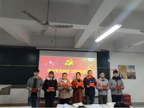 党支部书记苗淑娟老师向12月份入党的7位同志送上政治生日贺卡,向7位同志致以政治生日的问候。