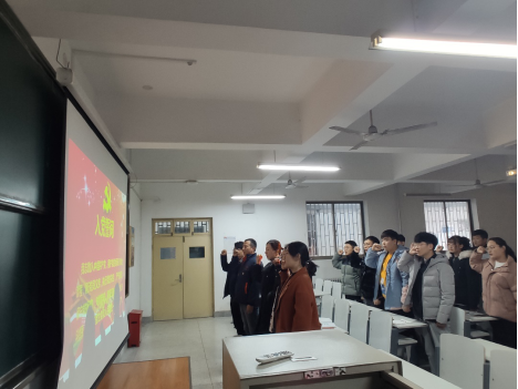 接着,由王保进老师带领全体正式党员重温一次入党誓词。在活动室,全体党员面向鲜红的党旗,郑重宣誓“我志愿加入中国共产党。拥护党的纲领,遵守党的章程,履行党员义务...”,重温入党初心,回忆入党过程,感受激情燃烧的岁月。
