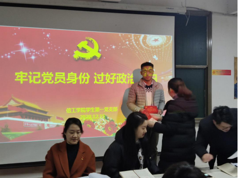 2020年12月15日下午一点,信工学院学生第一党支部于资讯楼315召开预备党员转正暨政治生日大会,该会由太阳成集团tyc33455ccww学生第一党支部书记苗淑娟同志主持,该支部全体正式党员和预备党员参与此次会议。