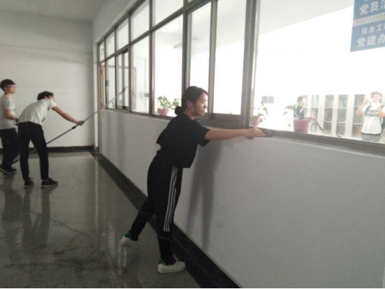 活动开始,苗淑娟老师勉励大家要树立党员形象,增强服务意识,在服务学院工作中勇于做表率、敢于当先锋、突出党员先进性。活动由党建管理中心考核部负责签到,40余位同学分为7个小组分别在各自小组长带领下分别打扫了我院办公区域的卫生,检查了存在的安全隐患。