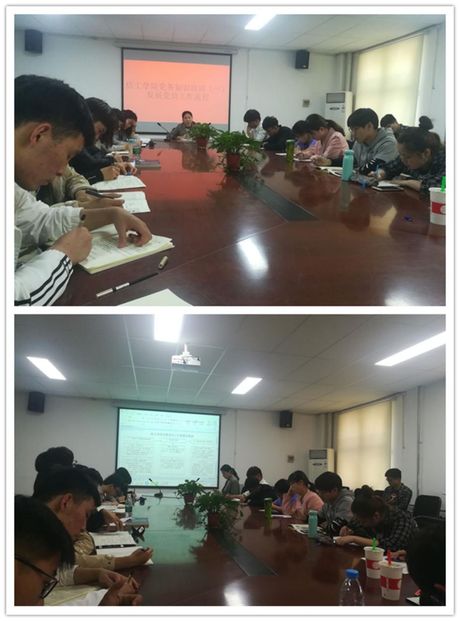 培训中,付一伦同学紧绕“发展党员工作流程”这一核心点,向全体成员们讲解了我校学生入党流程、学生入党条件等系列问题。他说,在入党过程中,学生需先后经历共青团员、入党申请人、入党积极分子、发展对象、预备党员、正式党员六种身份的演变,循序渐进、环环相扣,并向大家介绍了发展党员过程中需要填写的材料。