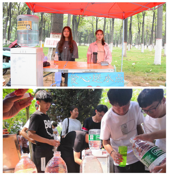 为表达信工学院对信工学子的关爱之情,帮助新生尽快适应新环境,提高新生军训质量。由信工学院生活部主办的“爱心送水”活动在后山篮球场持续开展。