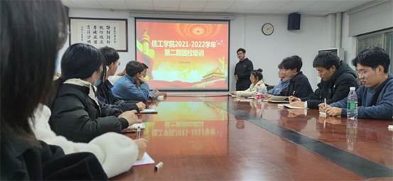 2021年12月8日晚上七点,团委学生会在资讯楼104开展信工学院2021学年第二期团学培训会议。本次会议邀请18级电子信息工程本科一班刘宗允同学作为主讲嘉宾,信工学院团委副书记文莉同学以及学院各部门的部长和网宣部全体成员参加了本次培训会。