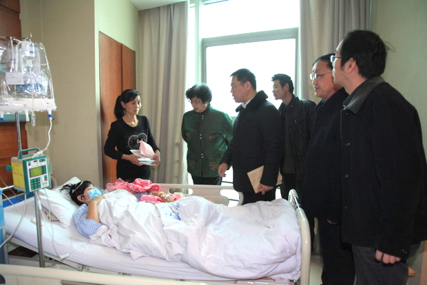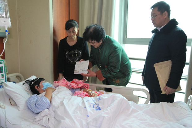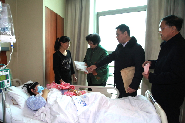 宋亚苹是信工系2013级物联网专业学生,于2014年1月1日被确诊为急性白血病。信工系党政领导听闻她的病情后,非常关心,积极和家长保持联系,并于1月3日上午,和学务处韩炎涛科长一起带着慰问品到医院探望宋亚苹同学,和医生进行了详细沟通;回校后,及时将她的病情向院领导进行了汇报,并率先在全系师生间开展了爱心募捐活动,短时间内就收到捐款2万多元。