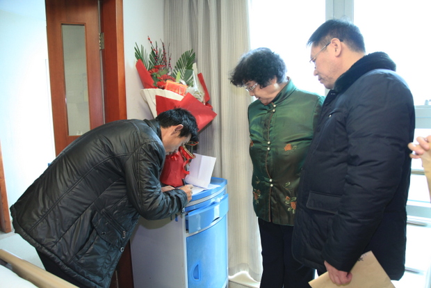 病魔无情,人间有爱。1月7日上午,董事长王淑芳女士、张金安副院长、信工系主任李学桥教授、党总支魏民书记等一行代表创办人、院领导和全院师生前去郑州大学一附院探望我院身患白血病的宋亚苹同学,并将全院师生的爱心捐款交付其家人。