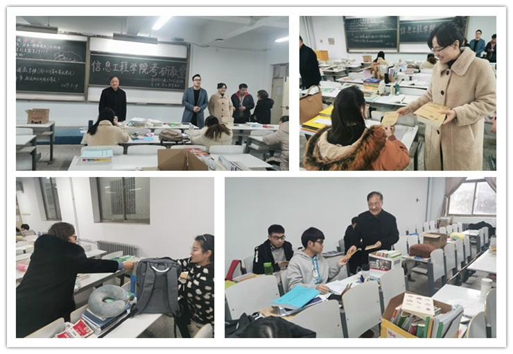 最后,李院长、王书记、白院长分别向在座同学们发放了学习使用的中性水笔和笔记本,祝福同学们考研顺利。