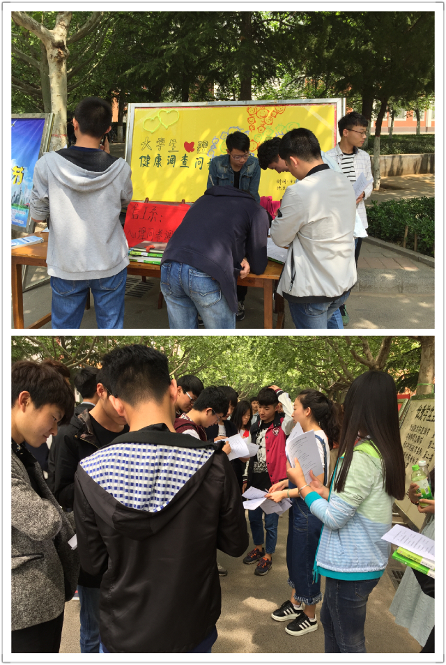 为了解我院学生有关心理健康知识普及的情况和目前他们心理的现状,信工系于4月21日中午12点至14点在龙湖食府十字路口东北角开展了大学生心理健康问卷调查活动。